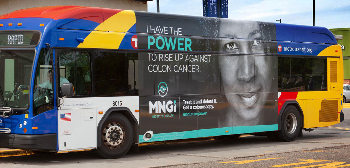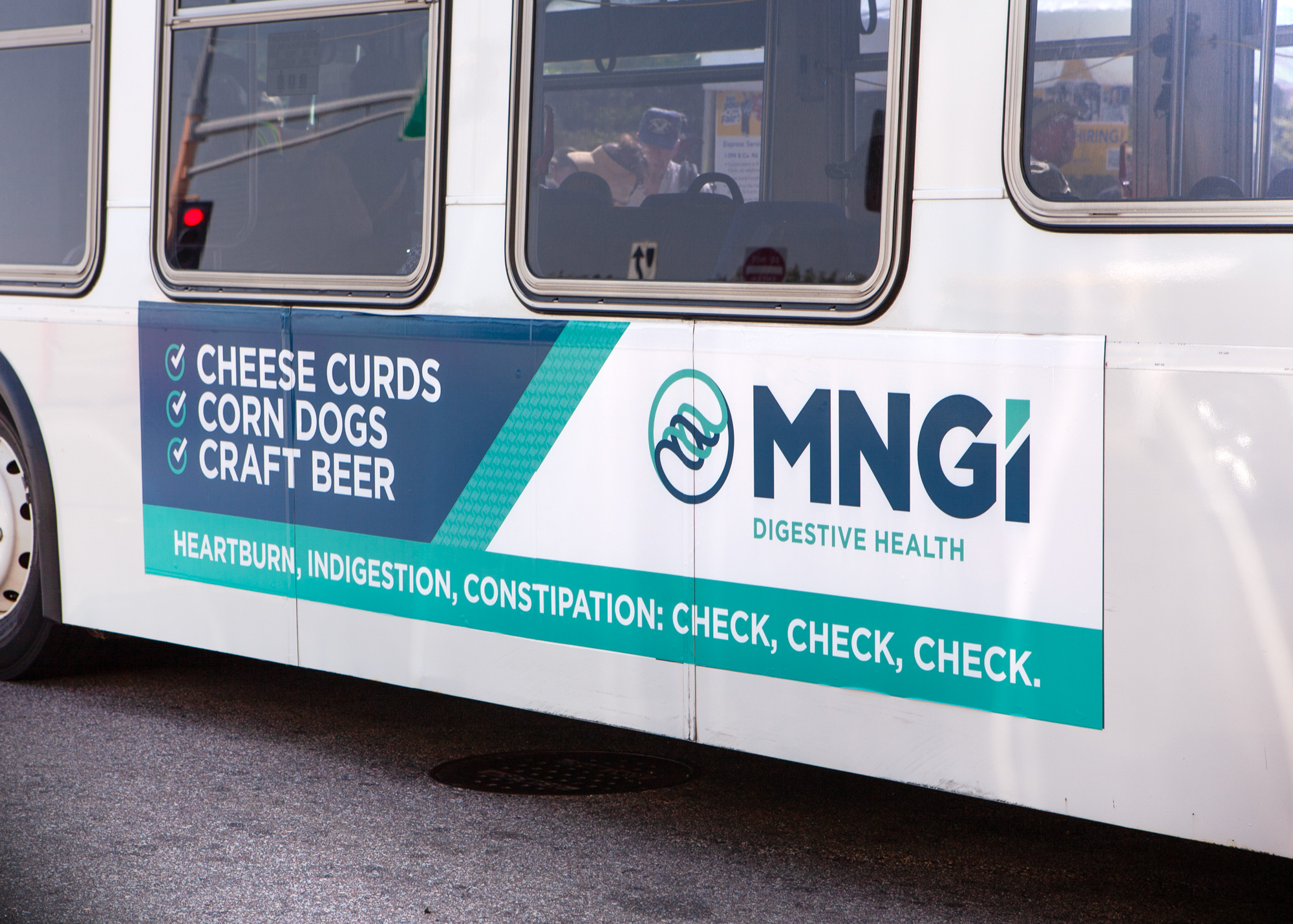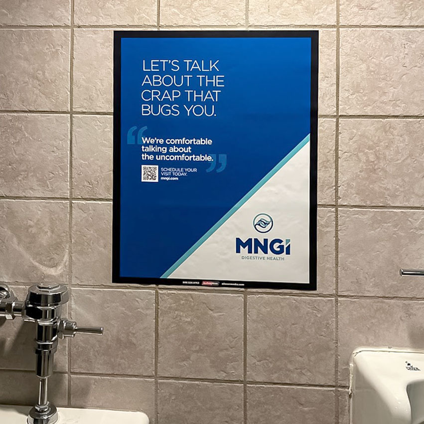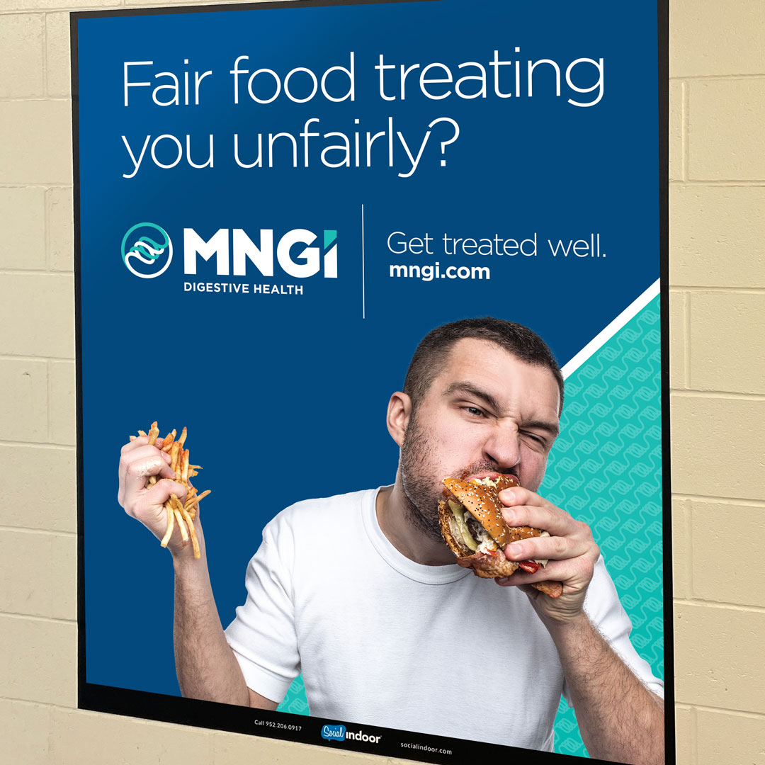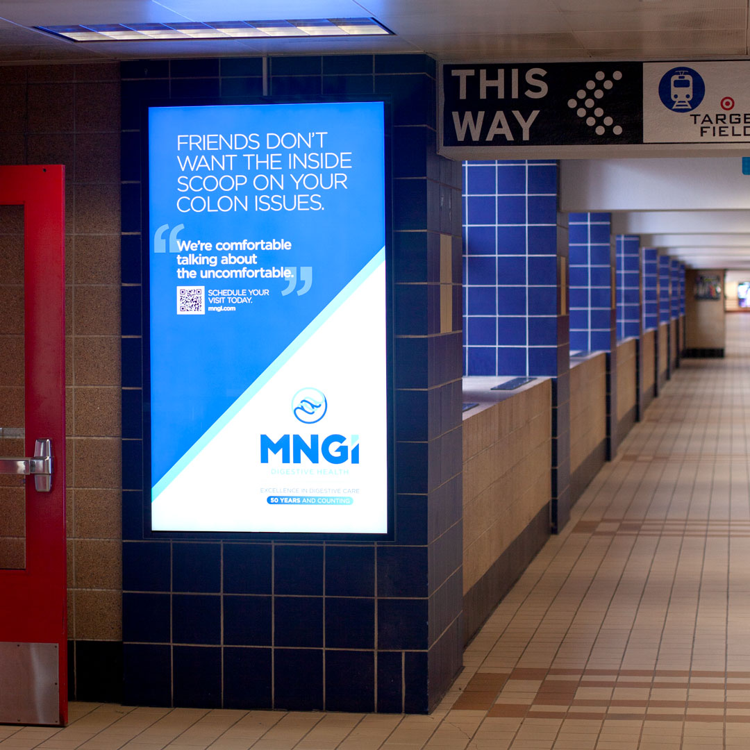 One of my favorite projects was a transit and on-site campaign for MNGI Digestive Health tied to the Minnesota State Fair. The work used light-hearted, approachable messaging across metro buses and fair restrooms to promote MNGI’s digestive care services and make uncomfortable topics feel more accessible.